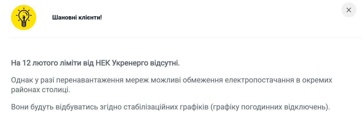 В Киеве и Днепре, как и обещала вчера ДТЭК, графики отключений на сегодня, 12 февраля, отменены.