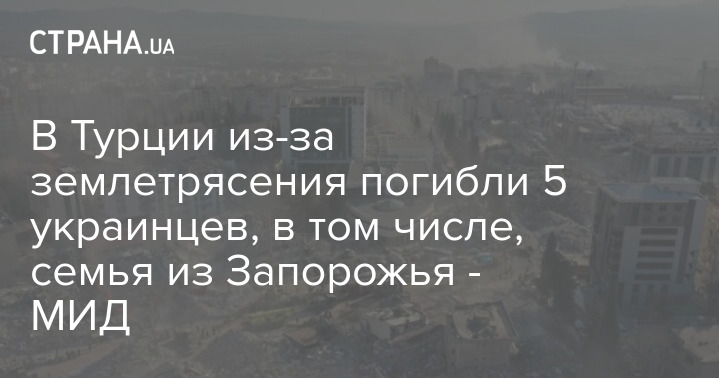 В Турции в результате мощных землетрясений погибли 5 украинцев, в том числе, семья из Запорожья.