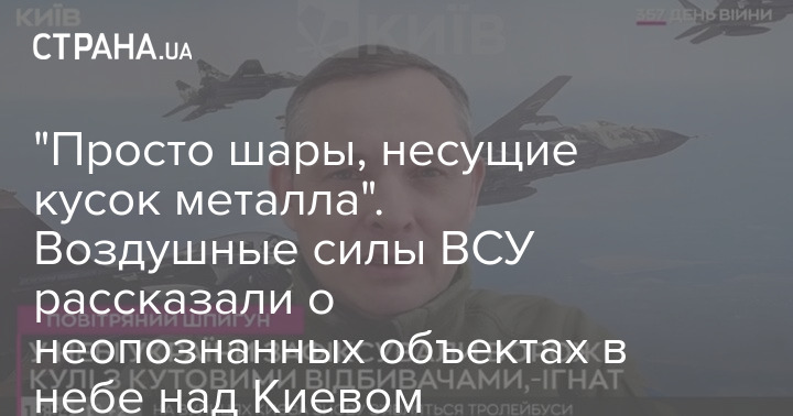 "Это не зонд, это не аэростат, это просто шар, который несет кусок металла. Воздушные силы сканируют небо 24\7, еще за пределами границы Украины. И тут уже идет мастерство, чтобы отличить шар от БПЛА, БПЛА от самолета и т.д. Понятно, что по воздушным шарам работать мощными средствами никто не будет. И 12 числа, и вчера применялись и пролетели на территорию других государств, Молдовы. Куда ветер дует, туда шар и летит", - заявил в эфире телемарафона Юрий Игнат.