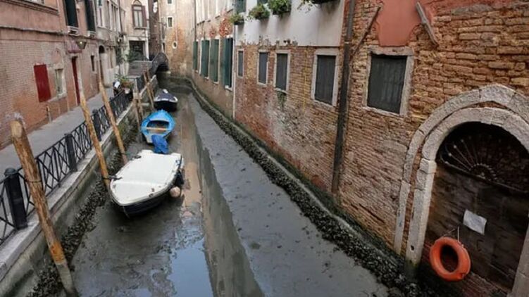 В Венеции гондолы не могут перемещаться по некоторым каналам из-за их пересыхания.