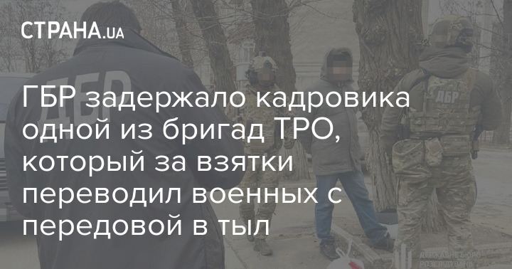 ГБР заявляет о задержании кадровика одной из бригад ТРО, который за взятки переводил военных с передовой в тыл.