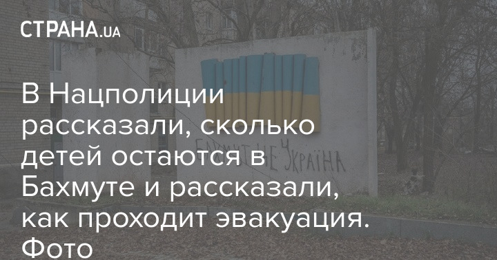 В Бахмуте Донецкой области, где сохраняется сложная ситуация, на сегодняшней день все еще находятся не менее 40 детей, но правоохранители продолжают эвакуацию из города.