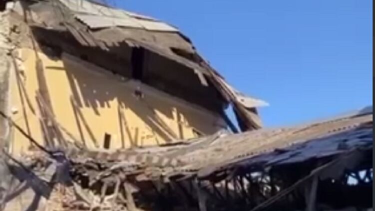 Один из них полностью разрушил верхние этажи здания школы, другой - взорвался с другой стороны, также разрушив часть здания, а на месте удара образовалась воронка значительных размеров.