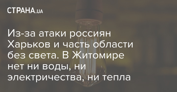 Весь Харьков и часть области остались без света после массированной атаки. В Житомире нет воды, электричества, отопления, перестал ходить электротранспорт.