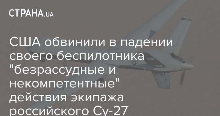 Европейское командование ВВС США заявило, что американский дрон MQ-9 Reaper потерпел крушение из-за "безрассудных и некомпетентных" действий экипажа российского самолета Су-27 в международных водах. Это произошло в 07:03 (в 08:03 по Киеву) 14 марта по европейскому времени.