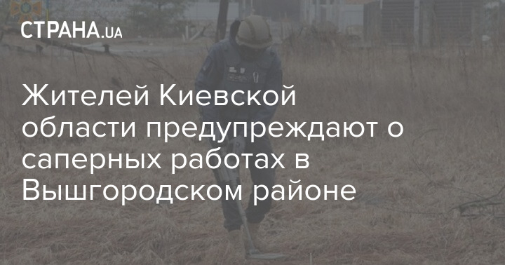 В Вышгородском районе Киевской области в пятницу, 17 марта, могут быть слышны звуки взрывов вследствие работ по уничтожению взрывоопасных предметов.