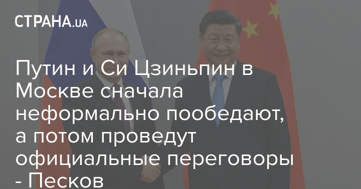 "Общение президента и председателя КНР начнется 20 марта во второй половине дня. Это будет общение "один на один". Будет неформальный обед. Уже непосредственно 21 марта будет день переговоров", - сказал Песков.
