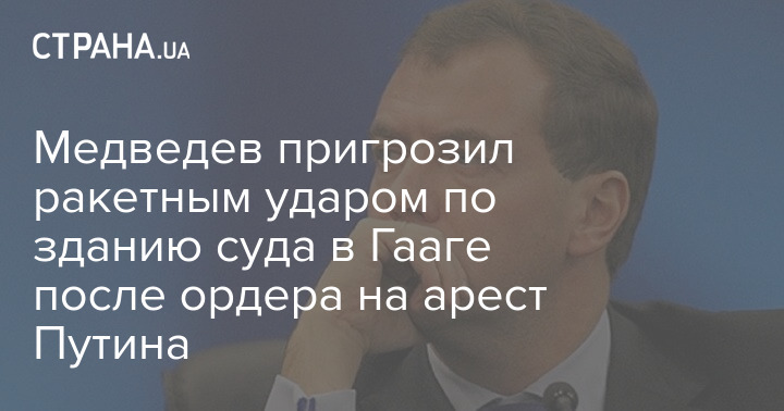 Зампред Совбеза России Дмитрий Медведев пригрозил ракетным ударом по зданию Международного уголовного суда в Гааге, который выдал ордер на арест президента РФ Владимира Путина.