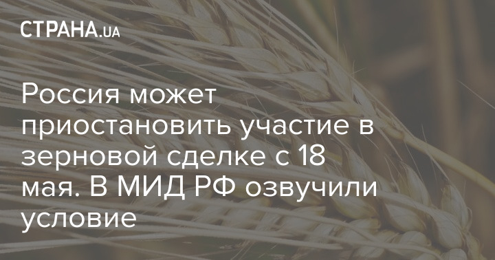 Россия приостановит свое участие в зерновой сделке с 18 мая, если не будет исполнена российская часть (то есть, снятие санкций с агроэкспорта РФ).