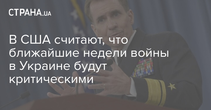 Официальный представитель Совета национальной безопасности США Джон Кирби озвучил мнение, что ближайшие недели войны в Украине будут "критическими".