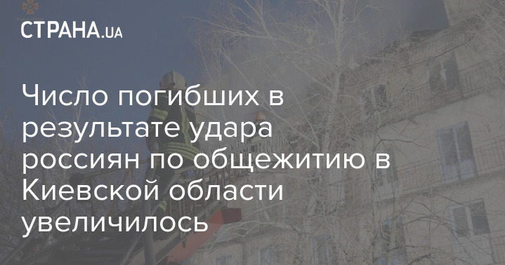 Число погибших в результате удара по общежитию в Киевской области увеличилось с трех человек до четырех.