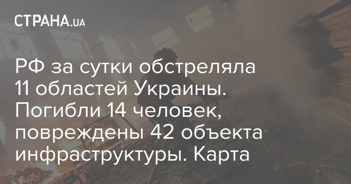 За прошлые сутки из-за обстрелов в Украине погибли 14 гражданских, еще 24 человека ранены. Под обстрелом оказались 11 областей. Повреждены 42 объекта инфраструктуры.