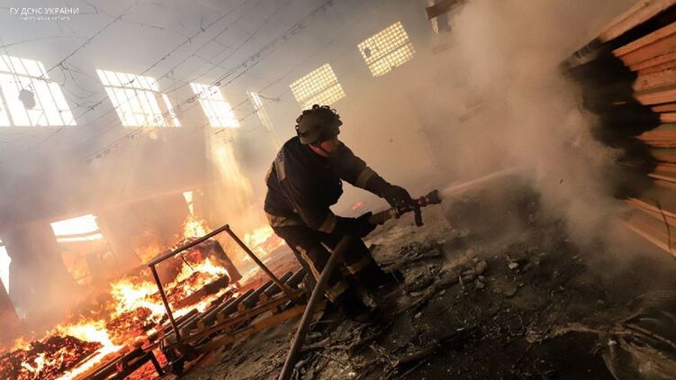 В Херсоне в результате вражеских обстрелов снова горели складские помещения. Фото: ГосЧС