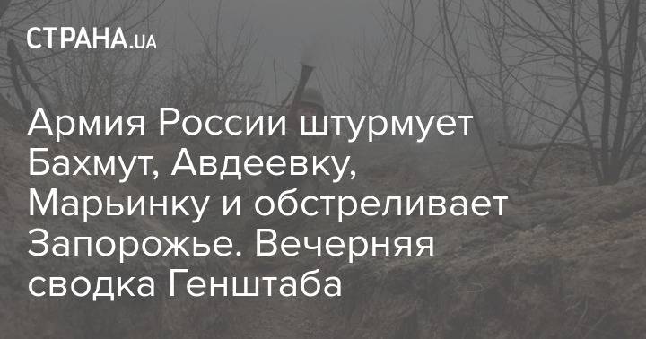 В Генеральном штабе Вооруженных сил Украины опубликовали оперативную сводку с фронта по состоянию на 18:00 22 марта. Сообщается, что армия России атакует под Бахмутом, Авдеевкой, Марьинкой и обстреливает Запорожье.