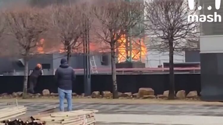 На опубликованных кадрах видно, как огонь охватил будку, а вверх поднимается густой чёрный дым.