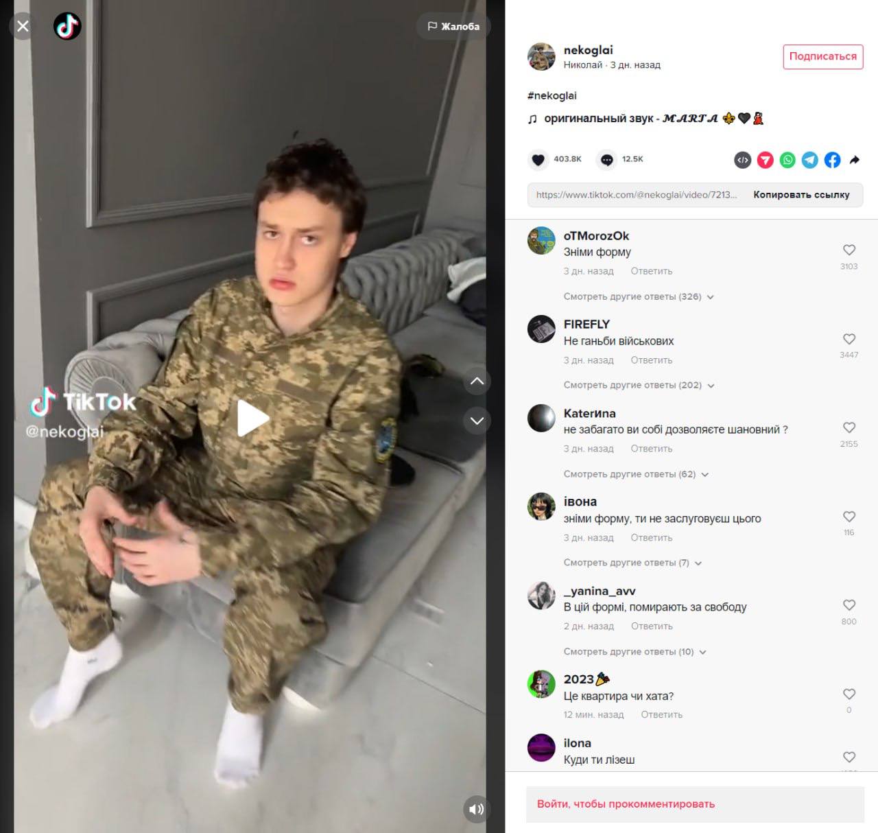 Покинувший Россию тиктокер молдавского происхождения Некоглай попал в скандал уже в Украине. Он станцевал на фоне флага ГУР Минобороны, чем вызвал хейт в соцсетях.