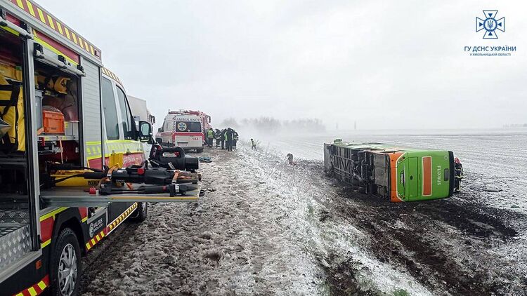По данным полиции Хмельницкой области, в машине находились два водителя и 25 пассажиров. 18 из них, в том числе, двое подростков, в больнице.