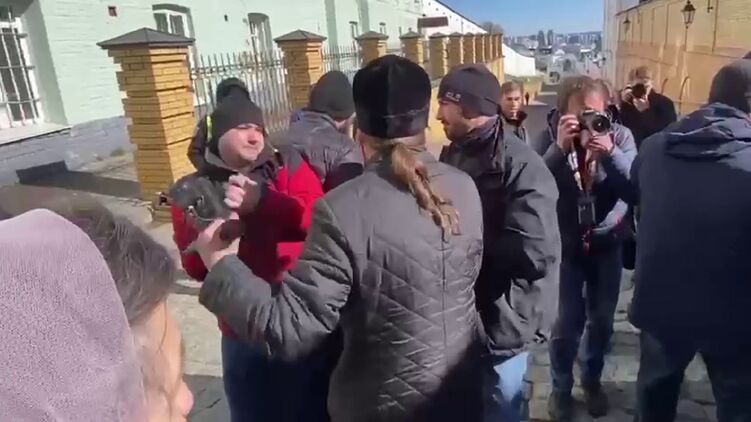 Напомним, сегодня в Лавре после утренней службы представитель УПЦ толкнул корреспондентку "Суспильне ТВ" и сорвал крепление на камере оператора телеканала. Это попало в объектив телекамер.