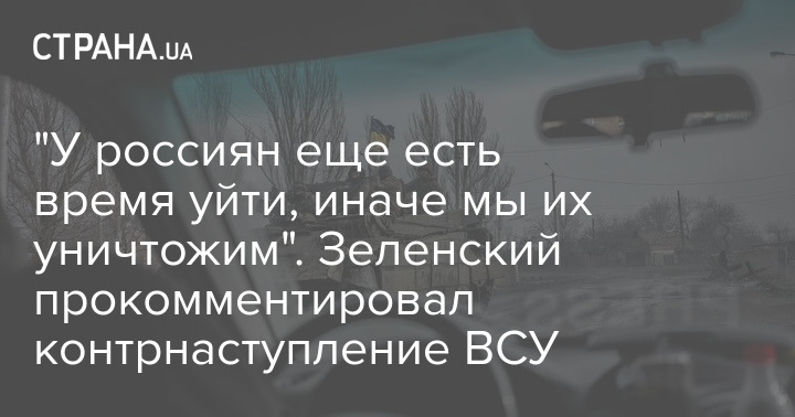 Президент Украины Владимир Зеленский, комментируя контрнаступление ВСУ, заявил, что у россиян "еще есть время уйти, иначе мы их уничтожим".