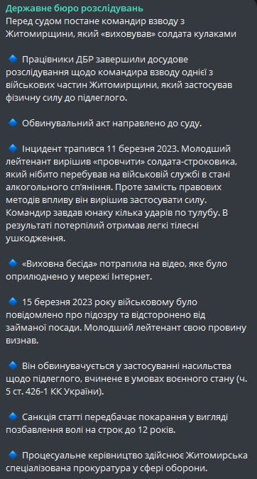 09.25 Дело по командиру взвода, который избил в Житомирской области солдата, передали в суд, сообщили в ГБР.