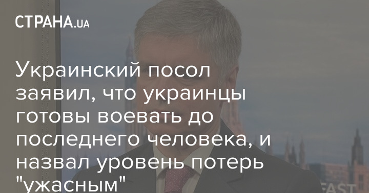 Украинский посол в Британии Вадим Пристайко заявил, что украинцы готовы сражаться с Россией до последнего человека. При этом уровень потерь ВСУ он назвал "ужасным".