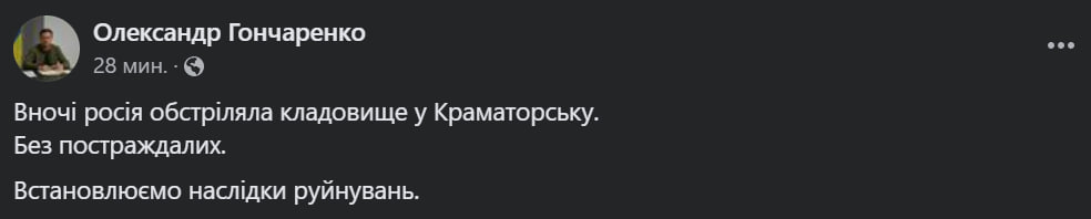 Ночью 10 апреля в Краматорске под обстрел РФ попало кладбище.