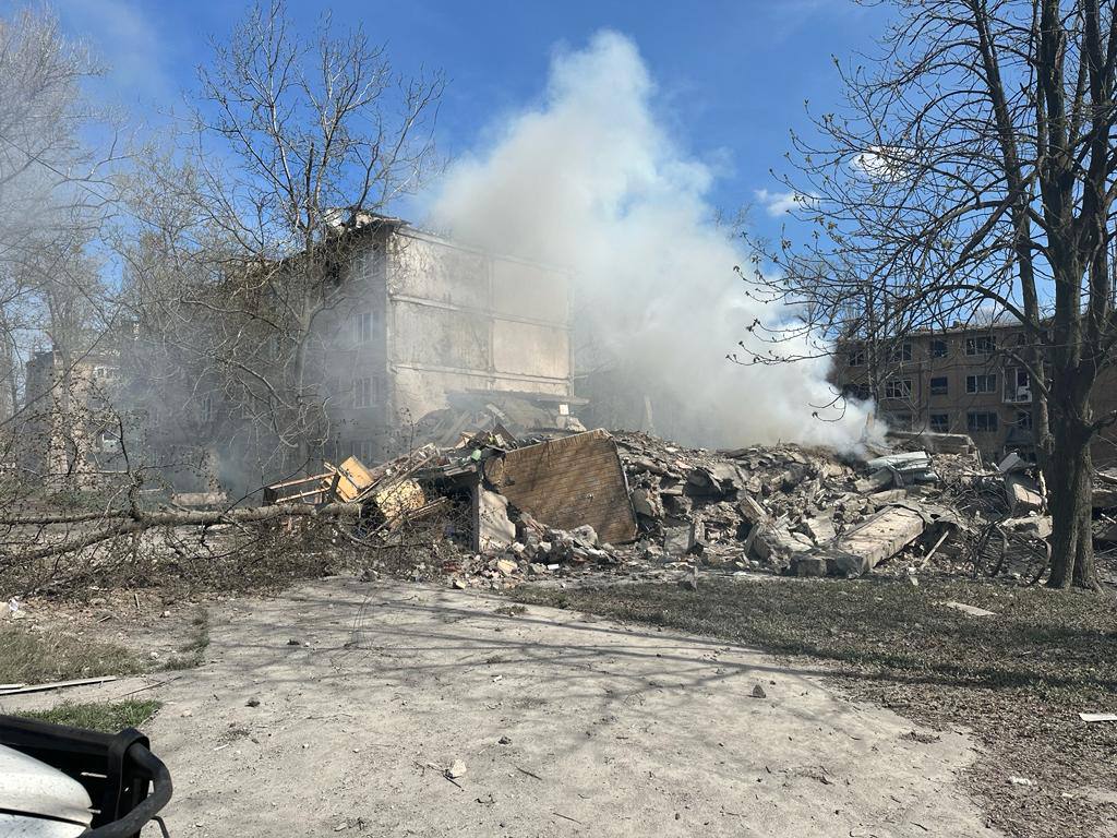 Российские войска утром в понедельник, 10 апреля, обстреляли Авдеевку Донецкой области. В результате был полностью разрушен жилой дом на несколько этажей.