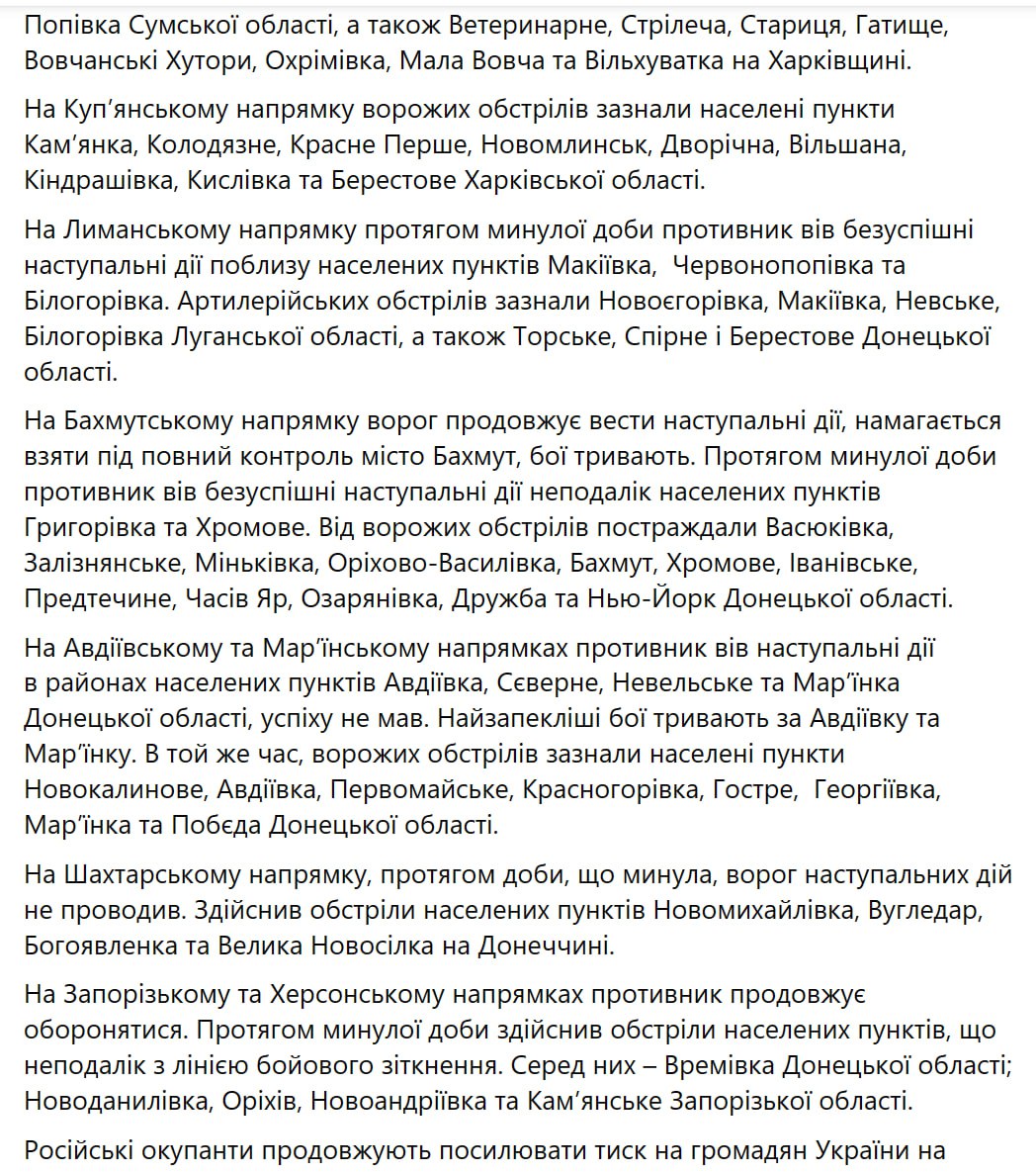 07.46 Главное из утренней сводки украинского Генштаба.