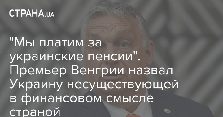 Премьер-министр Венгрии Виктор Орбан в интервью венгерскому Radio Kossuth назвал Украину "несуществующей в финансовом смысле страной".