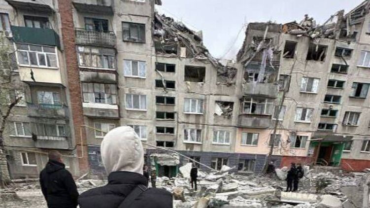В Славянске обрушилось несколько этажей жилой панельки после прилета. Видео