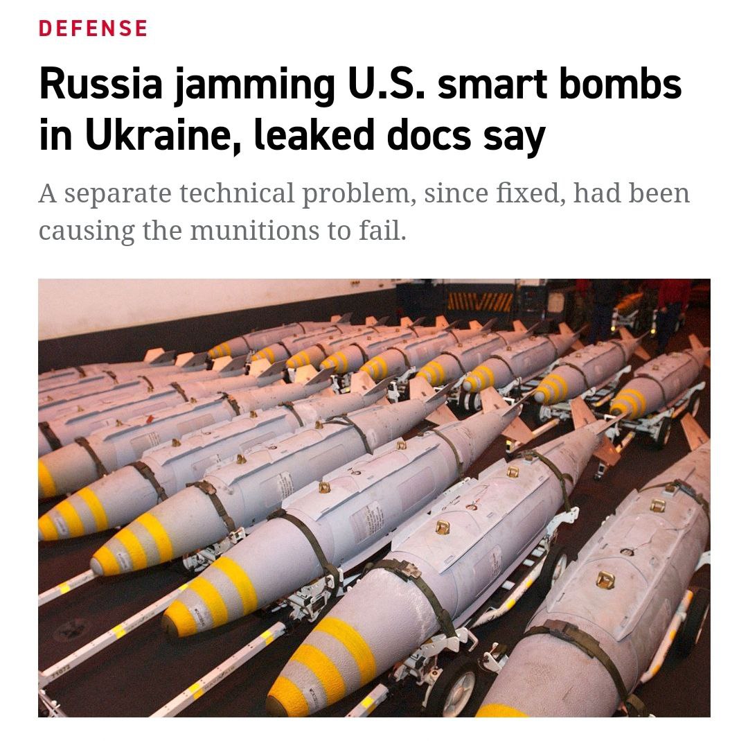Как уже сообщалось в утечках Пентагона, "умные" бомбы становятся жертвами российских радиоэлектронных помех, из-за чего часто не попадают в цель.