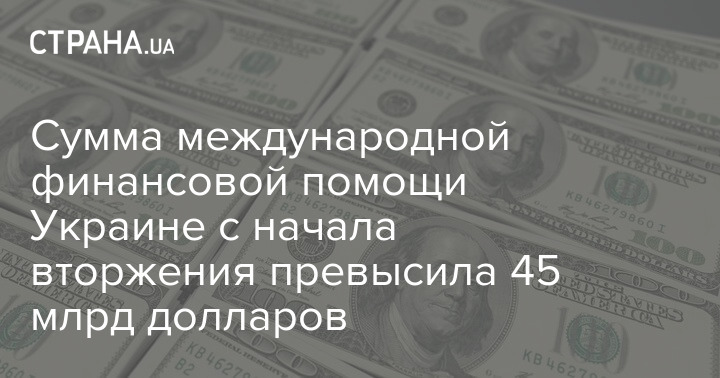 Международная финансовая помощь Украине в виде кредитов и грантов с начала полномасштабной войны превысила 45 млрд долларов.