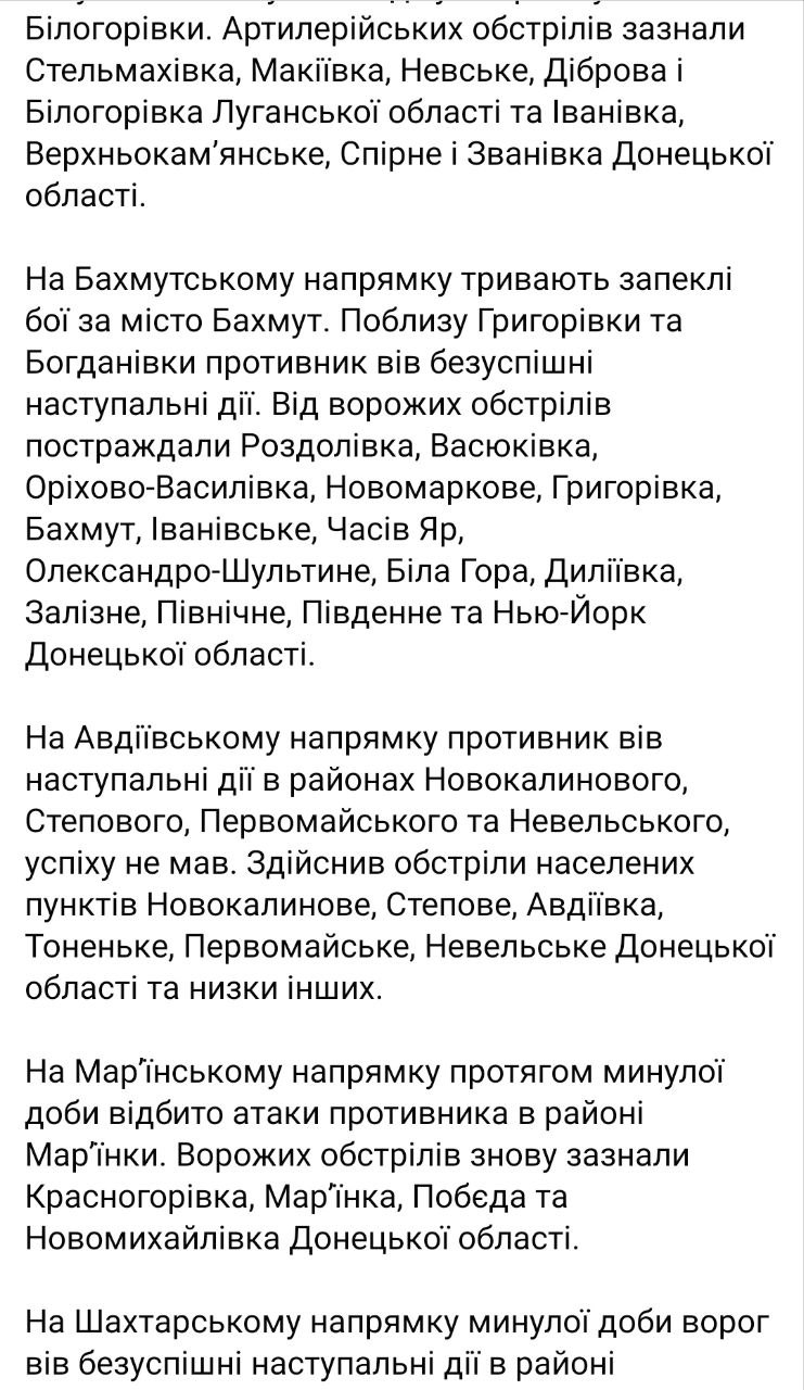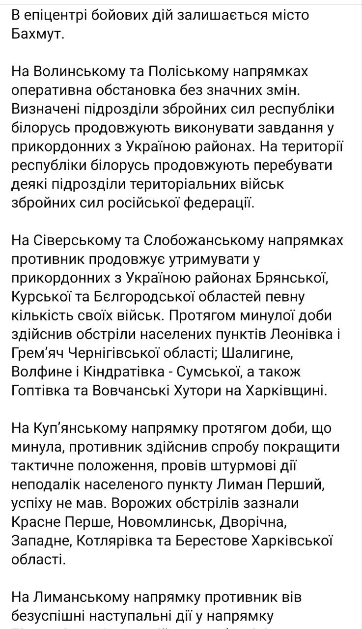 Ранее Замминистра обороны Анна Маляр подтвердила продвижение россиян в Бахмуте и на других неназванных направлениях. Однако в том же Бахмуте ВСУ удается и контратаковать. Что касается наступления РФ на других участках фронта, Маляр сообщает, что на большинстве из них врага удается сдерживать.