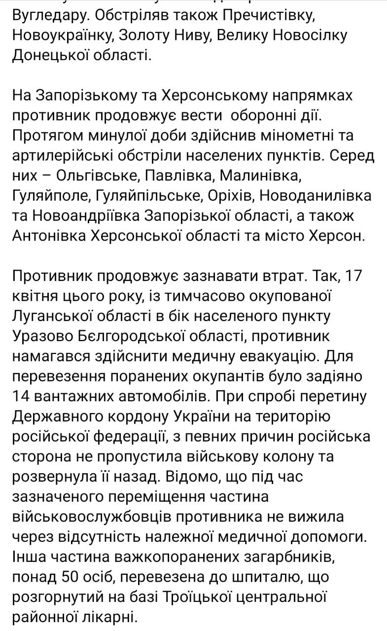 В субботу, 22 апреля, Генштаб Вооруженных сил Украины опубликовал утреннюю сводку с фронта.