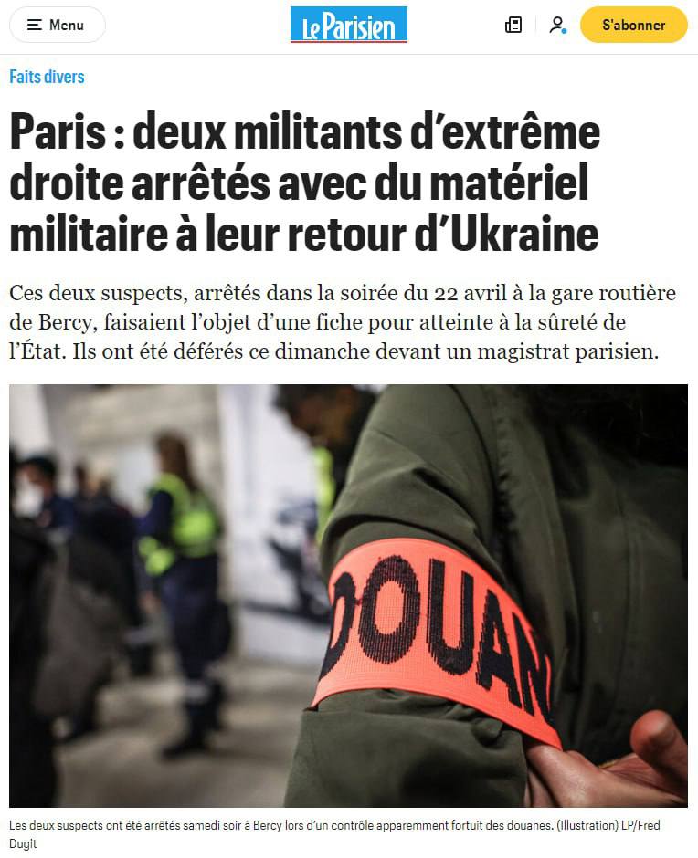 18.11 Двое французских ультраправых, воевавшие на стороне Украины, арестованы с оружием после возвращения на родину, пишет Le Parisien.