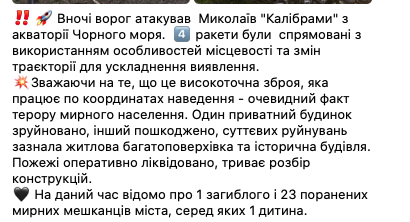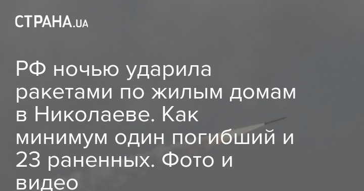 Сегодня ночью РФ совершила ракетный обстрел жилых домов в Николаеве. Погиб как минимум один человек, ранены еще больше 20.