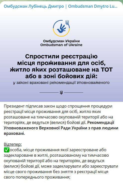Об этом сообщил омбудсмен Дмитрий Лубинец в своем телеграм-канале.