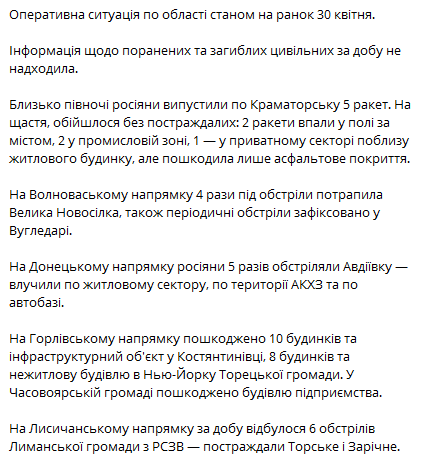 Тем временем война в Украине продолжается уже 431-й день. Мы следим за новостями 30 апреля в своем онлайне.