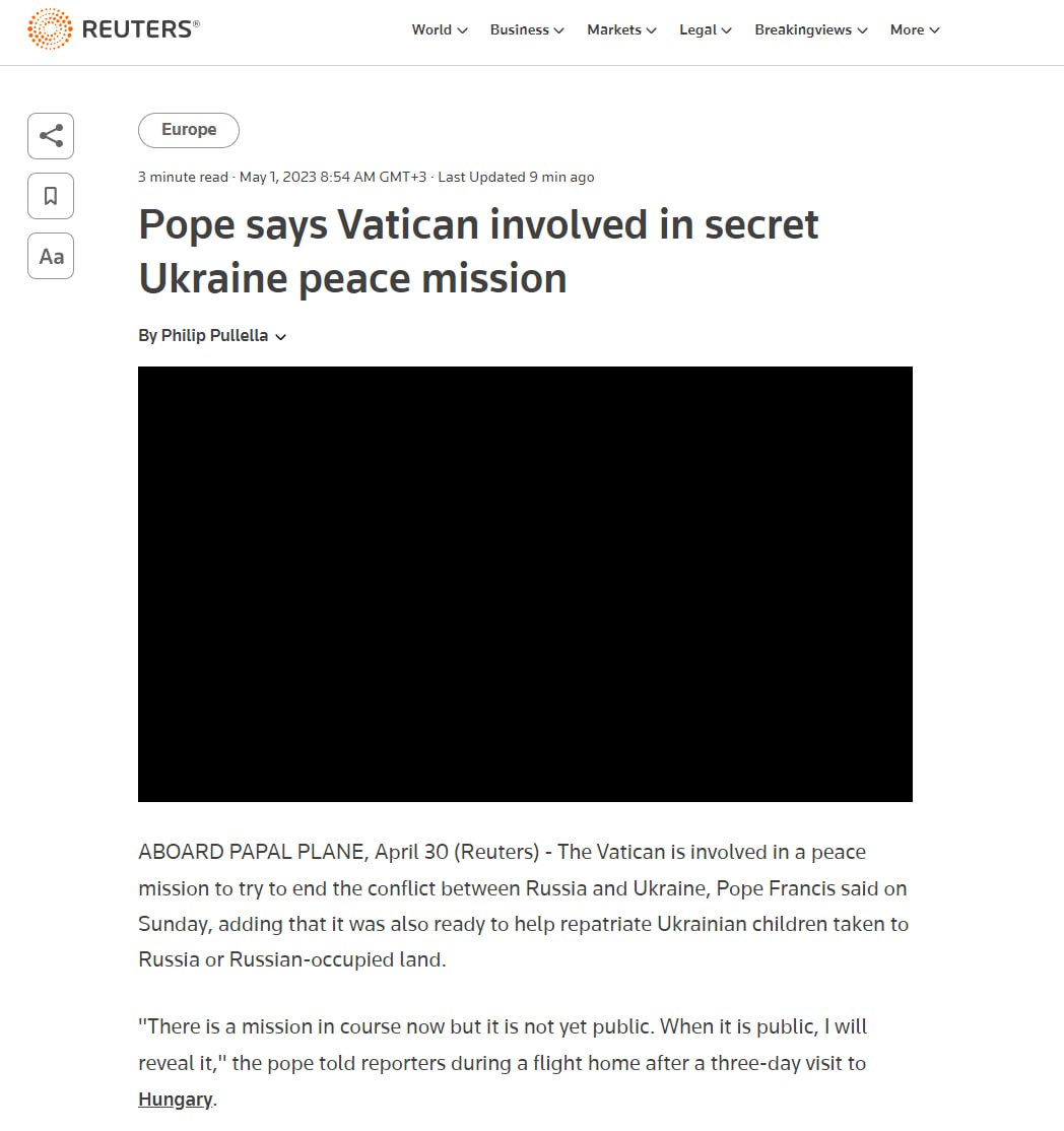 "Сейчас идет миссия, но она еще не обнародована. Когда она будет обнародована, я раскрою ее", - сообщил Папа Римский журналистам после визита в Венгрию.