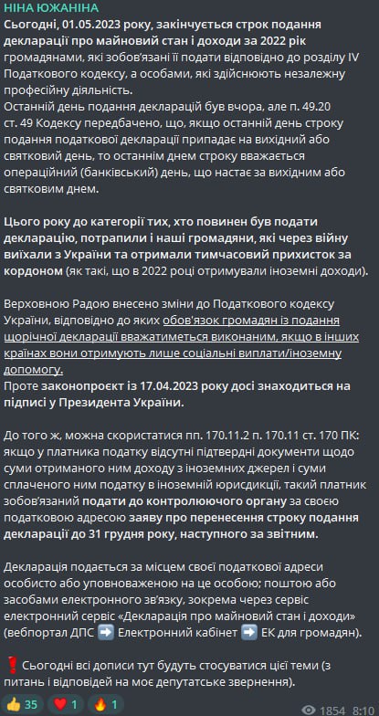 Об этом сообщила нардеп Нина Южанина. По ее словам, законопроект, отменяющий для беженцев подачу деклараций, до сих пор не подписан Зеленским, а значит, в силу не вступил.