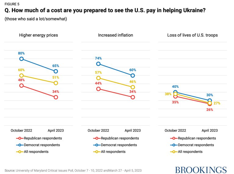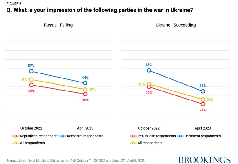 12.55 Поддержка Украины в США падает, и это "должно беспокоить американских политиков", считает "Институт Брукингса".