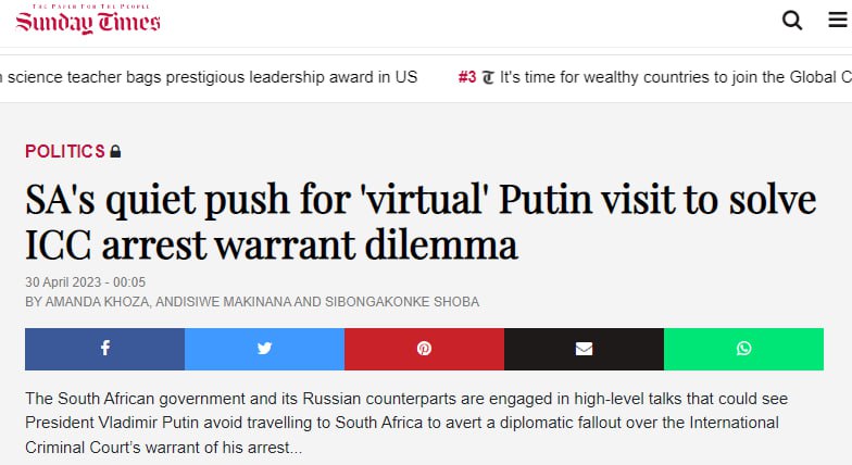 По информации издания, на прошлой неделе президент ЮАР Сирил Рамафоса создал специальный правительственный комитет, который изучит варианты действий в связи с ордером МУС. В частности, СМИ писали, что ЮАР рассматривает выход из МУС в качестве варианта действий.