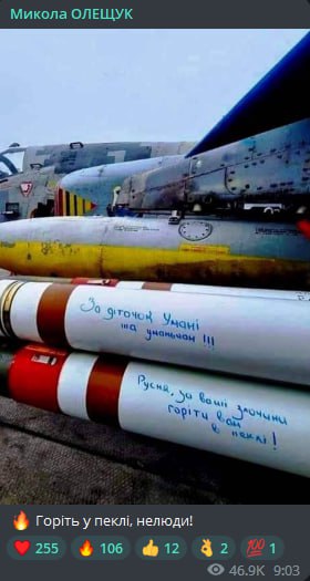На ракетах видна надпись "За детей Умани и уманьчан", что может указывать на то, что эти ракеты используются на фронте.