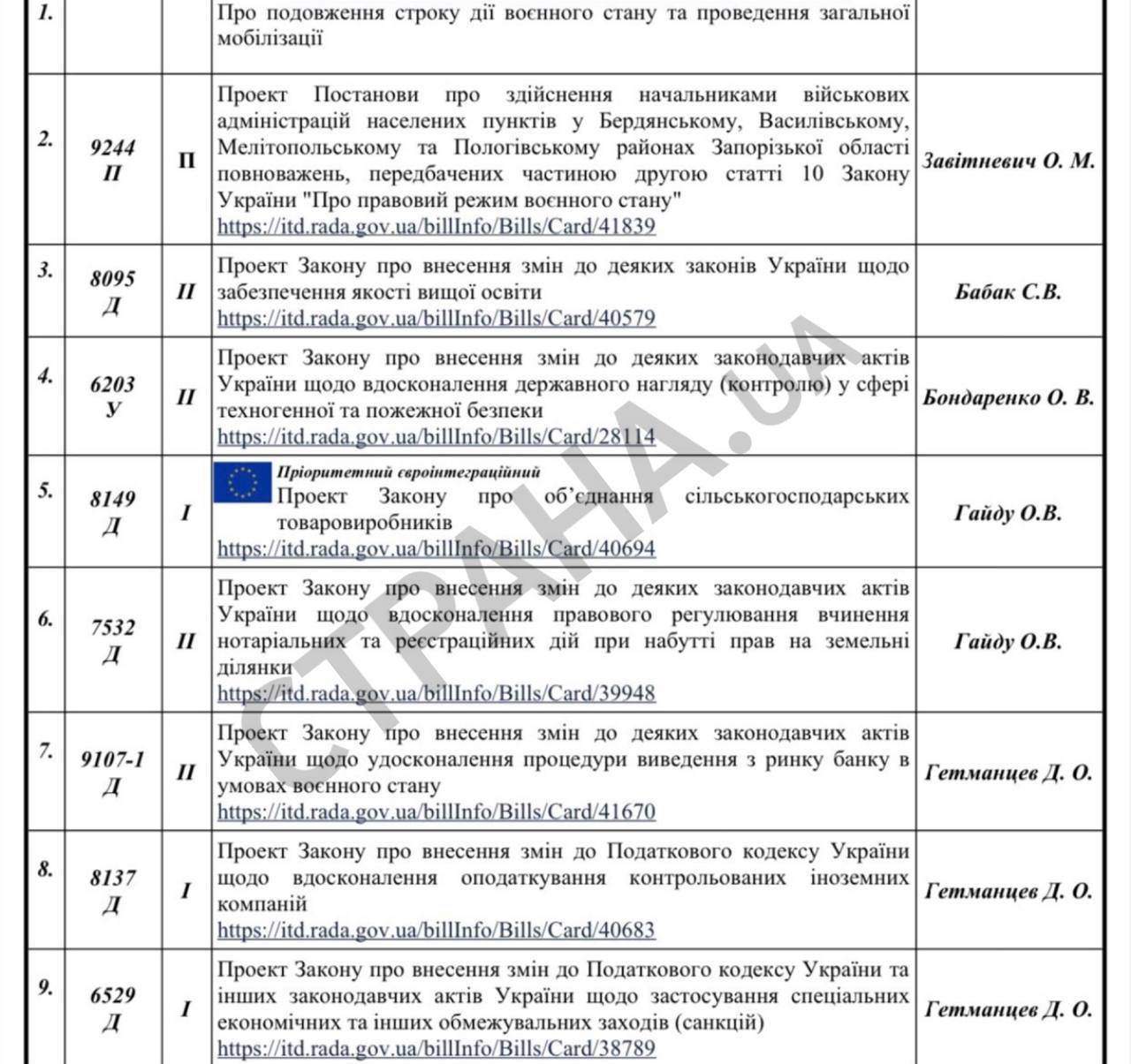 14.33 В распоряжении "Страны" оказалась предварительная повестка заседания Верховной Рады Украины.