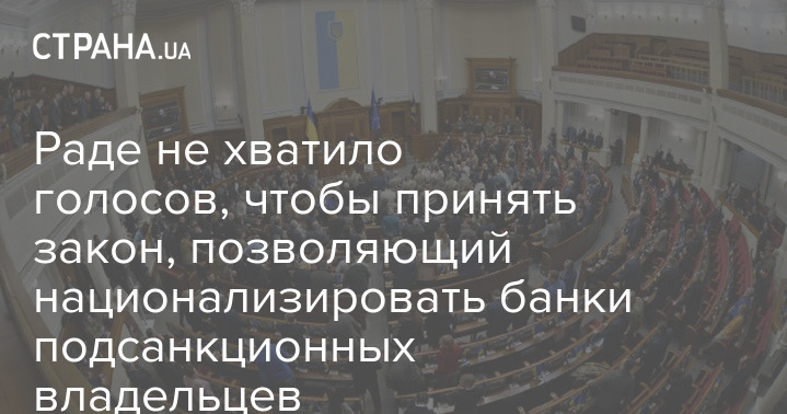 Раде не хватило голосов, чтобы принять закон, позволяющий национализировать банки подсанкционных владельцев