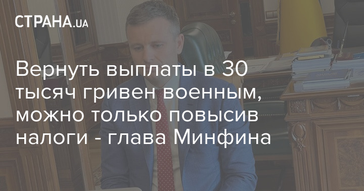 Профинансировать возвращение выплат в 30 тысяч гривен военным в тылу, можно только повысив налоги.