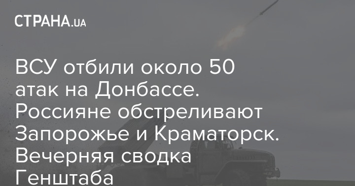 ВСУ отбили около 50 атак на Донбассе. Россияне обстреливают Запорожье и Краматорск. Вечерняя сводка Генштаба