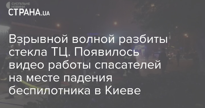 Взрывной волной разбиты стекла ТЦ. Появилось видео работы спасателей на месте падения беспилотника в Киеве