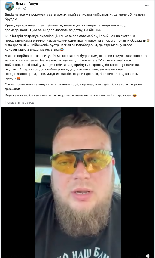 По словам Ганула, его знакомый предложил ему встретиться с военными, которым якобы требовалась помощь волонтеров – Демьян Ганул позиционирует себя в этом качестве и часто публикует фото о своей поддержке фронту.