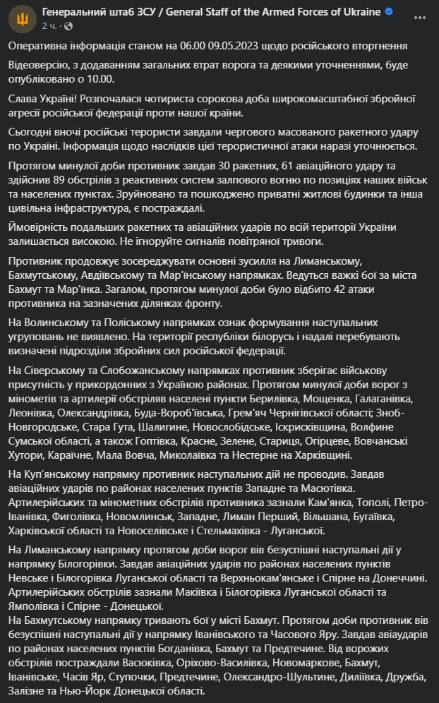 09.22 Сводка украинского Генштаба на утро 9 мая.